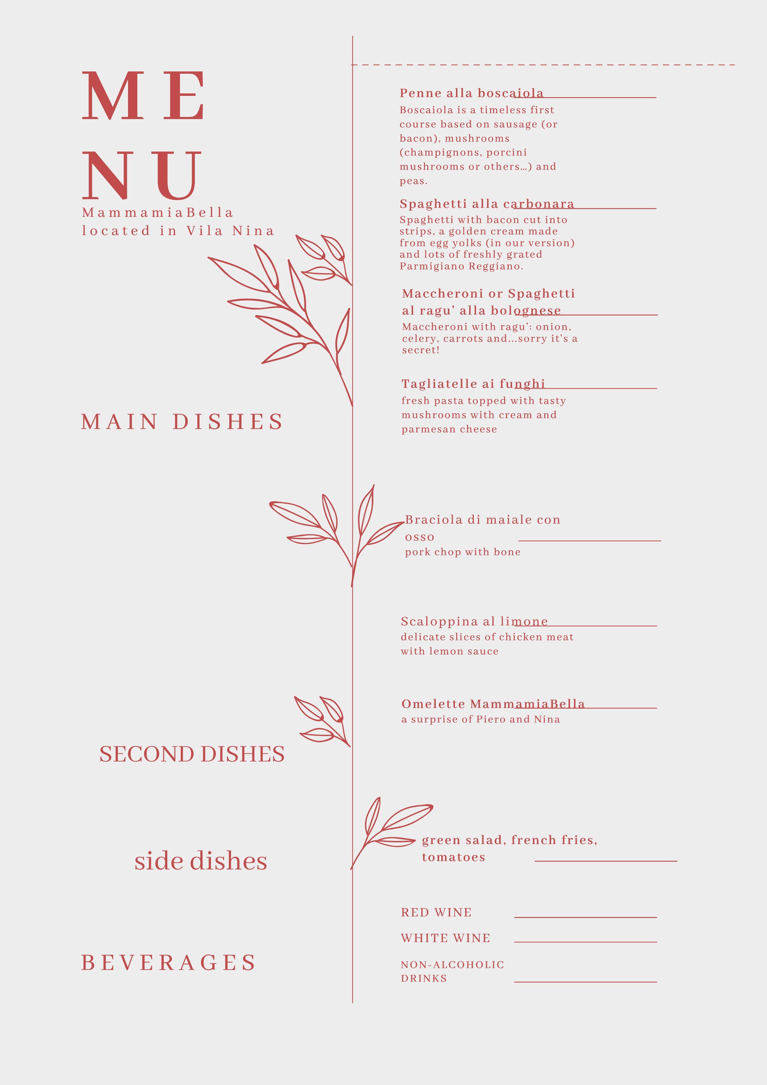 Our dishes and sauces (ragù) are prepared according to Italian tradition: